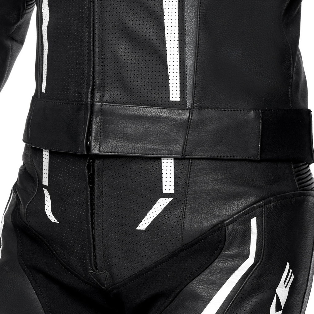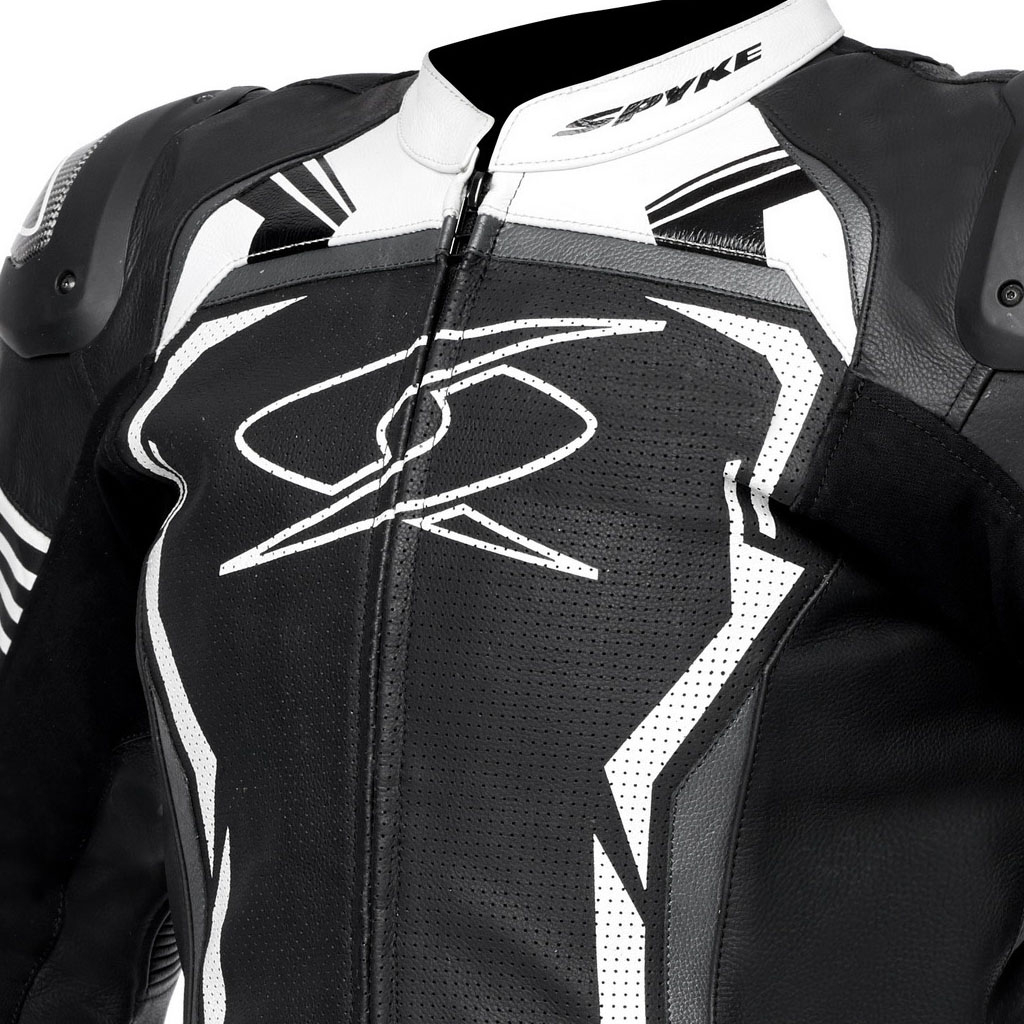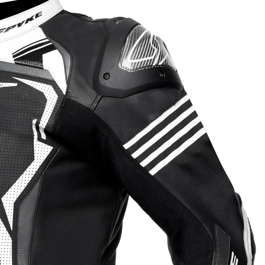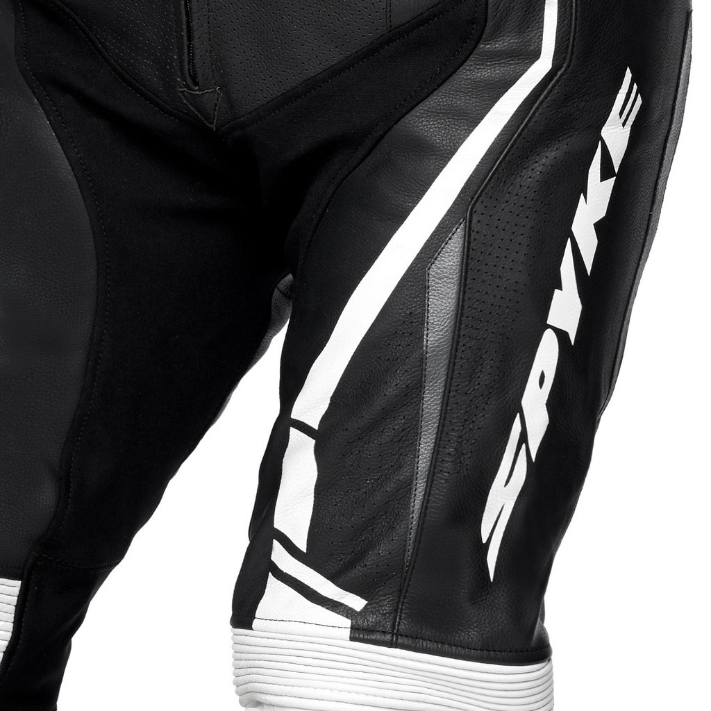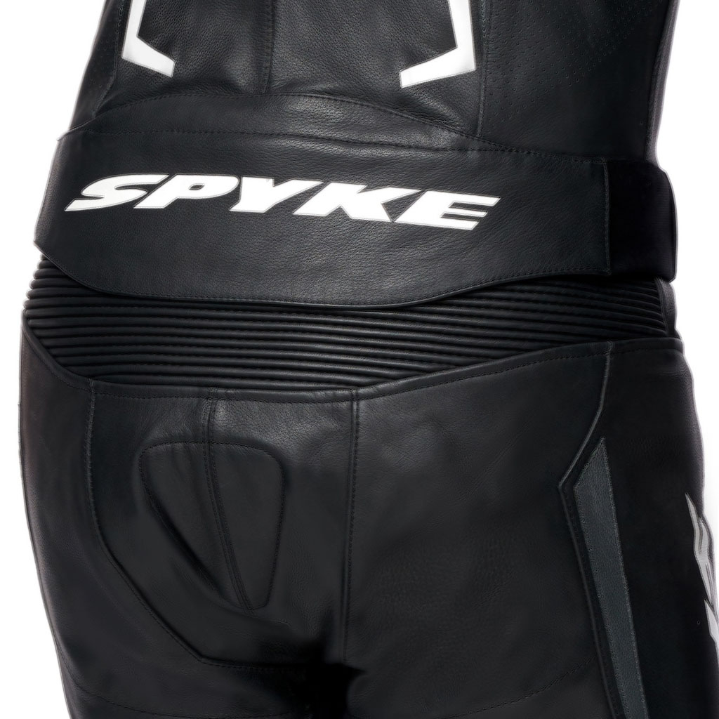 Hidrofug 1,2/1,3mm piele vacă Inserții din fibre elastice. Țesătură X-STRETCH pe umăr, brațe și laterale. Căptușeală interioară din plasă din polietilenă fixată cu zone elastice. Protecții CE pentru umeri, cot și genunchi omologate conform PN EN 1621-1:2012. Buzunar la spate pentru protecția spatelui CE nivelul 2. Protecții externe interschimbabile pentru umeri cu logo SPYKE cu TEPEX. Căptușeli laterale antișoc. Toate zonele de cusătură cu construcție cu cusături de siguranță conform standardului EN 17092:2020. Piele perforată pe față, spate, mâneci și picioare, pentru ventilație. Cocoașă de curse pentru spate. pentru performanțe aerodinamice îmbunătățite. Mâneci în formă de mâneci de curse. Acordeon la cot, genunchi și spate pentru mișcare relaxantă. Închidere cu fermoar pe mâneci și picioare de jos cu sistem „flat lock” (blocare automată și glisor anti-plutitor). Manșete din neopren pentru glezne și încheieturi. Neopren la guler pentru absorbția transpirației. Țesătură elastică pentru o potrivire plăcută. 2 buzunare interioare. Glisoare detașabile pentru genunchi. Glisoare incluse. Fermoar de conectare.