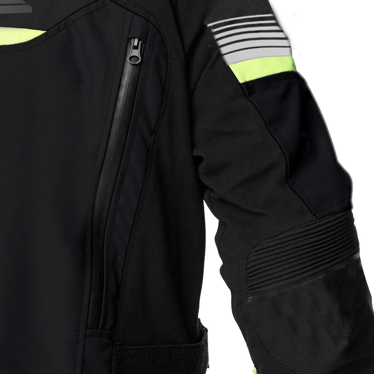 Jachetă 2 în 1. Înveliș exterior – poliester 600D fixat cu căptușeală din plasă 100% poliester. Detașabil, respirabil, 15000, țesătură impermeabilă din poliester conectată cu softshell ca și căptuşeală termică. Toate straturile pot fi folosite separat. Închidere cu fermoare YKK și YKK Cosmo Cârlig și bucle. Protecții CE pentru umeri și cot aprobate conform PN EN 1621-1:2012. Buzunar la spate pentru protecția spatelui CE nivelul 2. Toate zonele de cusătură cu construcție cu cusături de siguranță conform standardului EN 17092:2020. Reglabil - talie cu curea si velcro. Zone reflectorizante față, spate și mâneci, cu reflectorizant în conformitate cu standardul EN 20471. Închidere frontală cu fermoar magnetic. Căptușeală din plasă antistatică și anti-bacteriană cu finisaj foarte moale pentru o senzație bună de atingere directă a pielii. Buzunare de aerisire pe spate. Buzunar impermeabil la spate. Reglarea volumului mânecilor. Închidere gât cu reglare de volum. Neopren la guler pentru absorbția transpirației. Fereastra de ventilație a aerului aprinsă, fata cu fermoar si nasture magnetice. Buzunare funcționale impermeabile în față. Zona acordeon pe cot. Volumul de jos - reglare cu buton rapid. Fermoar cu două capete în partea de jos a mânecii. Buzunar Napoleon în interiorul jachetei. Jachetă interioară impermeabilă detașabilă și purtabilă separat. Butoane cu sigla SPYKE. Fermoar de conectare.