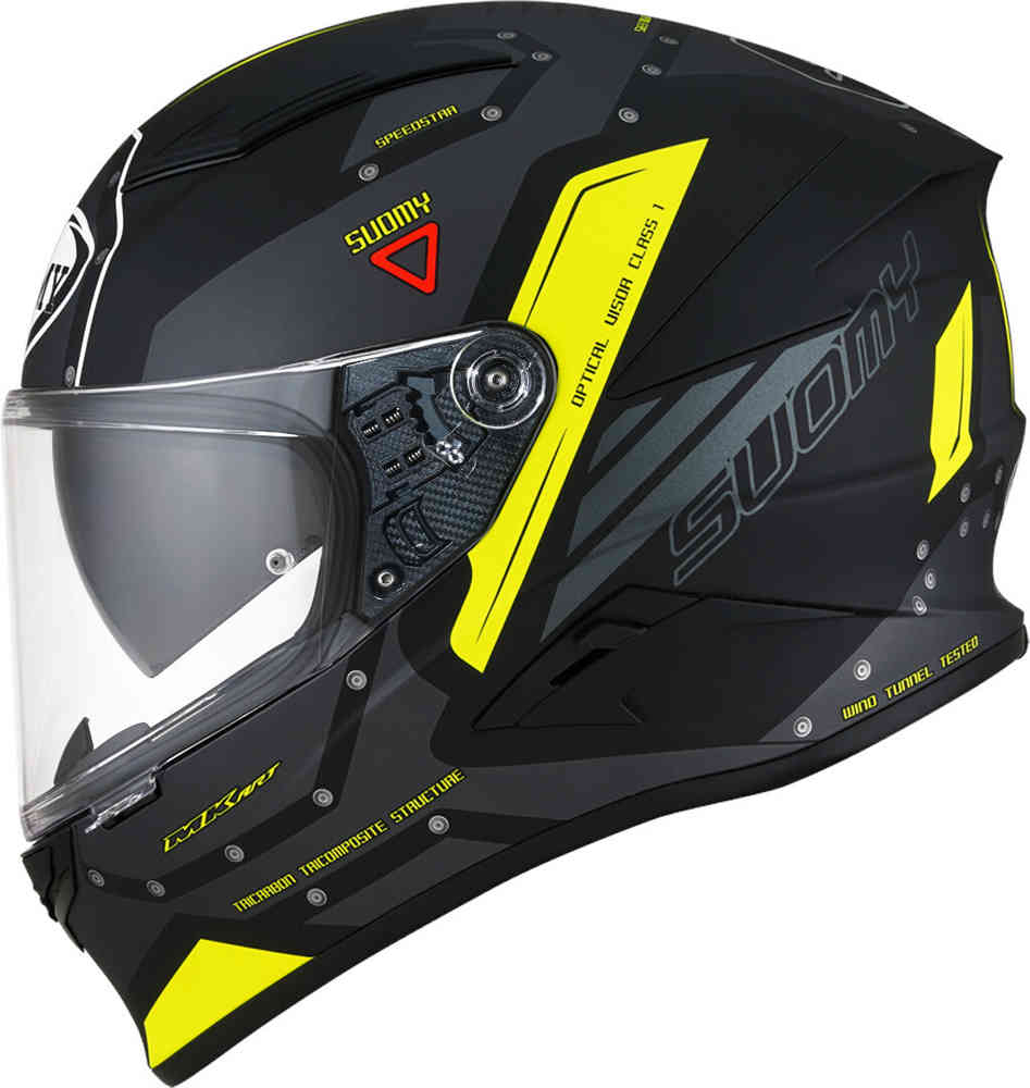 Ambițiosul SPEEDSTAR este cea mai recentă inovatie Suomy care, cu acest model, oferă un nou concept de cască sport versatilă. Sesiunile frecvente de tunel de vânt, testate ca o cască de curse, au permis crearea unor forme dinamice, un coeficient aerodinamic puternic și o echilibrare generală de invidiat.
