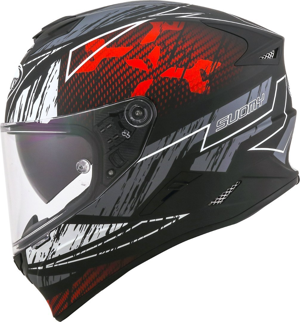 STELLAR este casca integrală New Generation de la Suomy, realizată din termoplastic ADT-Advanced. Formele dinamice și de performanță sunt proiectate și dezvoltate într-un tunel de vânt, pentru a avea cele mai bune performanțe în ceea ce privește confortul în timpul mersului pe motocicletă. Interiorul este produs cu cele mai bune tehnologii pentru a garanta fiabilitatea și confortul pentru toți motocicliștii, în timp ce motocicliștii tipici au nevoie să se alăture celor de tuoring-curse pentru a crea un concentrat de soluții tehnice, potrivite pentru toate traseele. Carcasă Carcasa este realizată din ADT-Advanced, un amestec de rășini termoplastice cu înaltă rezistență la impact. Pentru a satisface chiar și cei mai exigenți clienți, STELLAR este produsă în două învelișuri diferite: M și L. Polistiren protector Căptușeala interioară din polistiren este realizată în două dimensiuni (M și L) pentru a obține un aspect mai bun, ergonomie și o densitate variabilă. Această caracteristică permite o absorbție treptată și progresivă a puterii produse de impact. Chiar dacă cea mai mare parte a energiei create de impact este absorbită de învelișul extern, datorită deformării sale, rolul polistirenului este crucial pentru absorbtia puterii reziduale. O densitate diferită a polistirenului permite optimizarea performanțelor mecanice ale carcasei-polistiren, asigurând nivelul maxim de absorbție în toate zonele căștii. Viziera Viziera este injectată PC, anti zgârieturi, optic în clasa 1 cu grosime variabilă. Cârligele și sistemul de rotație permit îndepărtarea vizorului fără unelte. Pinlock STELLAR este echipată cu obiectiv PINLOCK Max Vision 70 inclus. Parasolar STELLAR este echipată cu parasolar ușor de utilizat cu mâna stângă. Ventilare Polistirenul intern a fost studiat pentru a lucra în simbioză cu admisia de aer de pe învelișul extern din fibră. Caneluri particulare, obținute pe polistiren, permit admisia fluxului de aer pentru o ventilație optimă în cască și o evacuare rapidă a aerul fierbinte. Interior Pernuțele pentru obraji și interiorul pot fi îndepărtate, spălate și înlocuite. Sunt confecționate din țesătură prețioasă cu fibre specifice care oferă următoarele caracteristici: • Evacuarea ușoară a umidității corpului • Păstrarea temperaturii corecte • Țesătură ușoară, moale și respirabilă • Tampoane pentru obraji pregătite pentru căști Bluetooth • Preformare pentru ochelari Sistem de retenție QRM-micrometric: Sistemul de retenție este echipat cu cataramă micrometrică