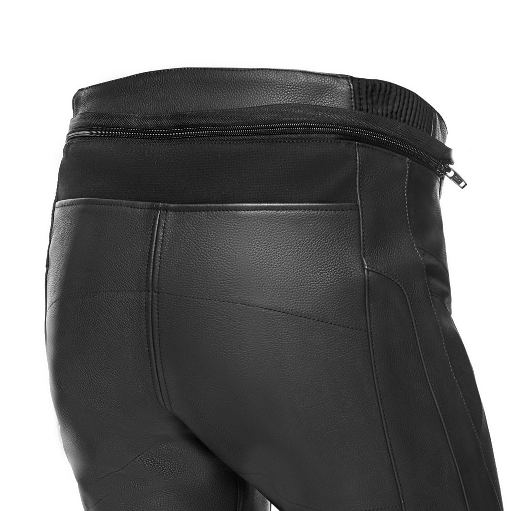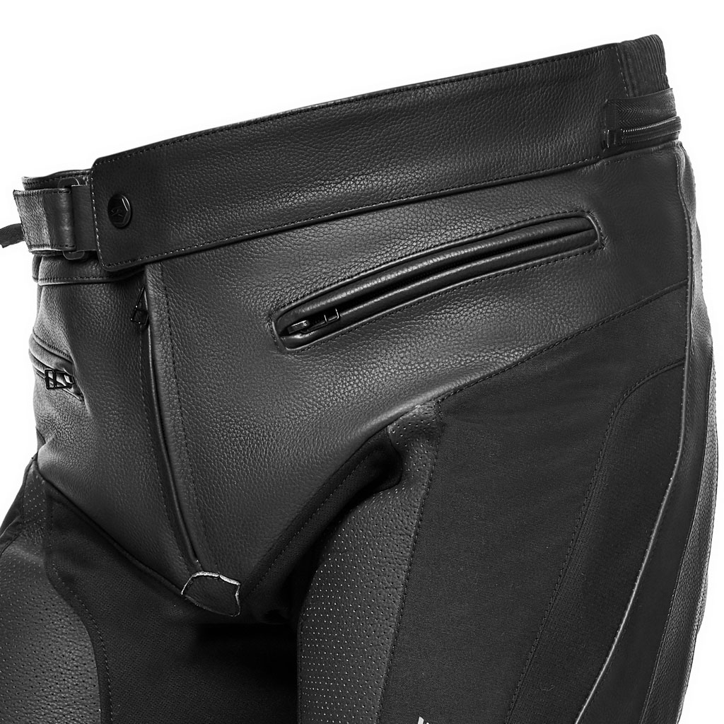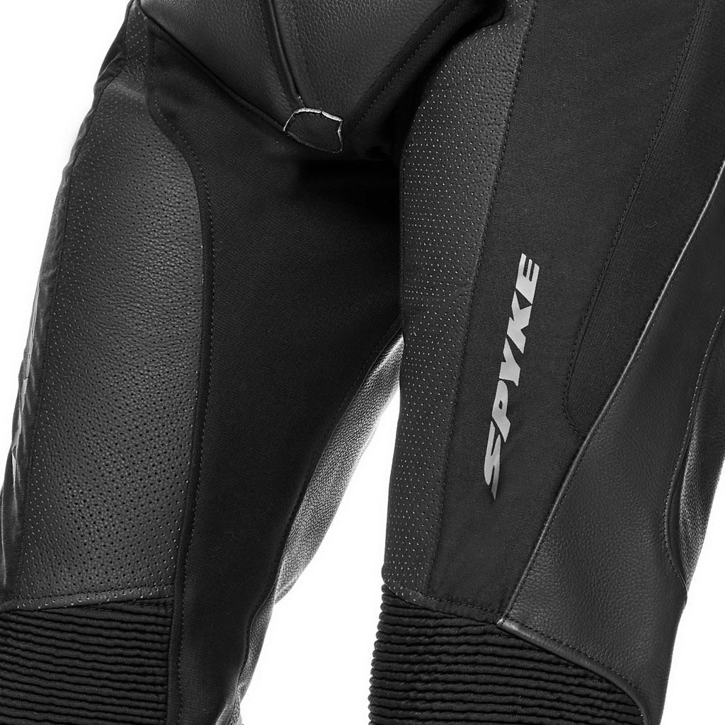 Piele de vacă de 0,9/1,0 mm. Interior - căptușeală fixă ​​din poli-plasă. Protectoare de genunchi CE omologate conform PN EN 1621-1:2012. Toate zonele de cusătură cu construcție cu cusături de siguranță conform standardului EN 17092:2020. Construcție dinamică fără sudură pe zonele de frecare de pe pantaloni și căptușeală interioară. Captuseli laterale care absorb șocuri. Zone flexibile pe talie și genunchi. Țesătură X-STRETCH de înaltă rezistență pe zona picioarelor, coapselor, gambelor și inghinelor. Inserții din material de înaltă rezistență pentru un confort mai bun. Sistem de conectare cu fermoar în talie la jachetă. Închidere de jos cu fermoar dublu pentru a purta pantalonul atât în ​​interiorul, cât și în exteriorul cizmei.