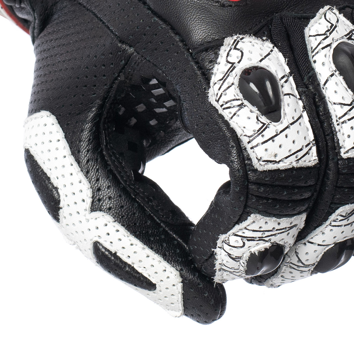 Mănuși Clarino Short din piele premium de curse, cu perforații pentru ventilație. Protecție TPU pentru buricele degetelor, cu orificii de ventilație. Protecție dură TPU pentru degete. Glisor din palmă din TPU. Curea TPR cu deschidere elegantă. Căptușeală în zonele cruciale. Straturi ranforsate de piele în palmă, pentru protecție suplimentară. Compatibile cu telefonul tactil. Manșetă cu deschidere cu velcro. Căptușeală moale din poliester în interior